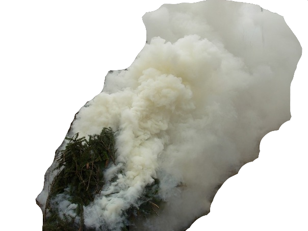Для дымового костра необходимо вначале построить костёр-шалаш, который покрывается вечнозелёными растениями, сосновыми и еловыми ветками, или, на худой конец, травой. Цель такого костра – подать сигнал бедствия сильным дымом, который будет видно с самолёта. За неимением этого можно использовать густые лиственные ветки или длинную траву.