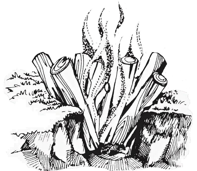 Основное назначение этого костра – приготовление еды, так как он дает равномерный огонь, легко регулируется сдвиганием к центру и раздвиганием бревен и является одним из самых экономичных по расходу дров.