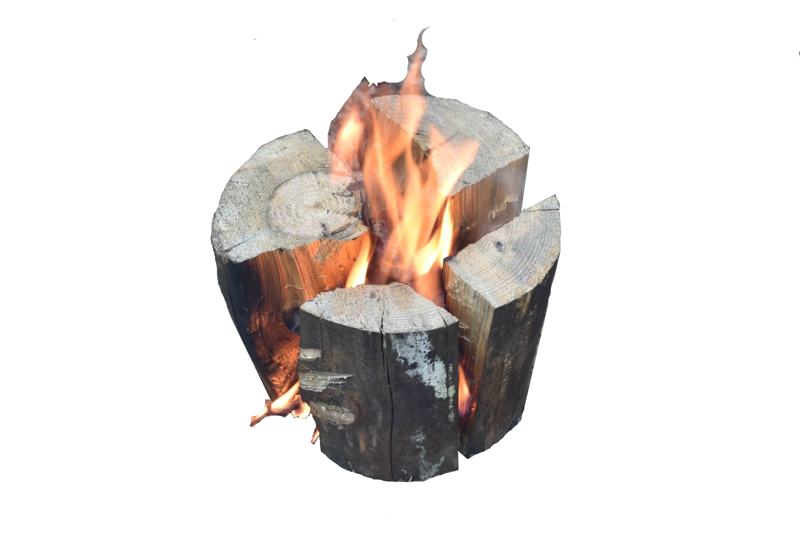 Разжигать такой костер можно Шалашом, а уже после в угли с разных сторон пододвинуть торцами бревна.